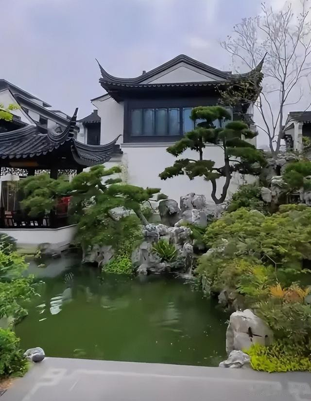 当然,这套别墅自带装修,古朴清雅,如吴冠中的画作般水墨淡远。院子之中,就有涟漪碧波,青砖黛瓦。各种盆栽也是造型曼妙,姿态舒展。
