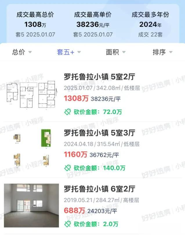 1、江宁的别墅盘——罗托鲁拉小镇最近曝出新成交:一套建面约342.08㎡的三层别墅,成交总价1308万,折合单价约3.8万/㎡。